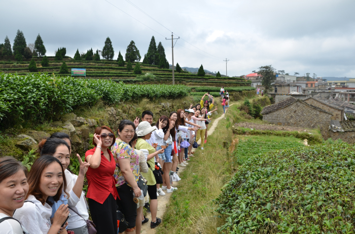 看到绿油油的大片茶海,所有人都喜笑颜开,展开双臂,拥抱大自然,沉浸在浓郁的茶文化氛围里。