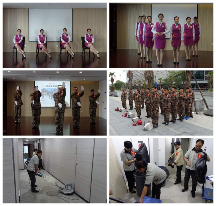 参赛班组围绕各自业务特点,分别进行了团队演讲、礼仪操展示、服务技能展示、消防器材实操、工程维修等项目的竞技。客服组在音乐的伴奏下对礼仪操进行了标准化展示,充分体现了客服人员婉约大方的美好形象;工程组参赛选手沉着冷静应对知识竞答,进行高压倒闸和电路检修时动作娴熟、干净利落;身着迷彩服的安防队员在整齐的步伐中闪亮登场,队列演练、车辆指挥和消防器材实操等技能竞技依次展开;保洁组通过现场清洁地毯、运送垃圾等,再现了工作中的协同和互助意识。
