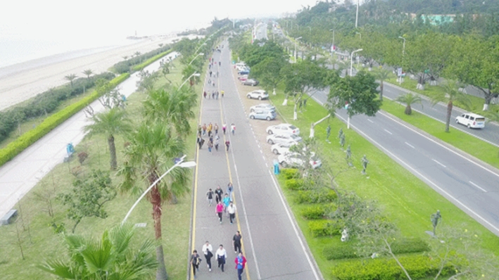 上午9点,热身活动后,随着许董的一声号令“出发”,102名参赛队员个个精神抖擞、斗志昂扬,冲向美丽的环岛路步行道,尽情感受着你追我赶的乐趣。