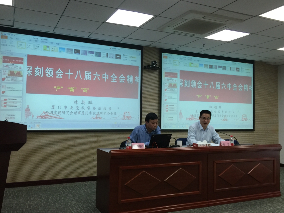 2017年3月11日(周六)下午,由中共厦门市委党校常务副校长、厦门市党建研究会会长、市委十八届六中全会精神宣讲团成员林朝晖同志《解读中共十八届六中全会精神》。深刻领悟了中国共产党第十八届中央委员会第六次全体会议精神,结合“两学一做”主旨和当下党的建设核心思想展开交流学习。