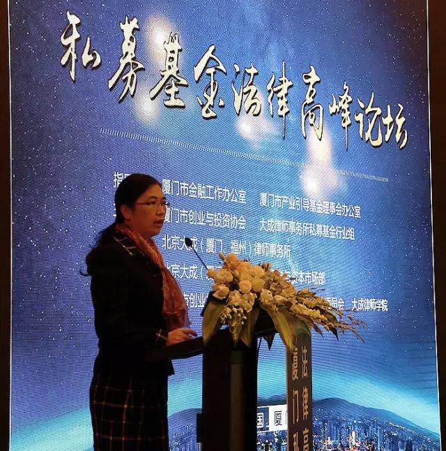 厦门市律师协会名誉会长、厦门市司法局副局长贺菊英女士,厦门创业与投资协会常务副会长、厦门市创业投资有限公司总经理谢洁平女士到会致辞。