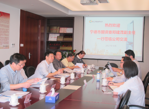 11月14日,宁德市国资委副主任郑建茂携宁德市国投公司、闽东能源投资公司、宁德市福宁投资公司、宁德市商业总公司、宁德市国有投资再担保公司等国有企业一行莅临厦门市担保有限公司(以下简称“厦门市担保”)交流,公司总经理李云祥会见了来访嘉宾。