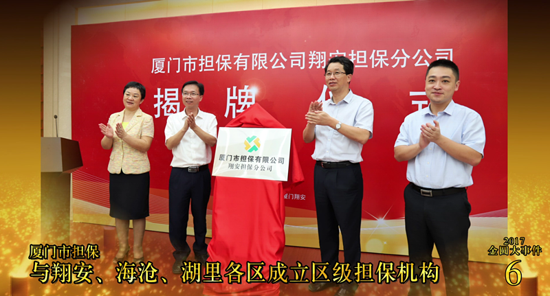 2017年,厦门市担保与翔安、海沧、湖里各区先后成立区级担保机构;首次当选中国融资担保业协会副会长单位;蝉联福建省最高AAA信贷市场主体评级,并在工信部牵头组织的全国担保机构社会责任评价中首获最高级AAAr。