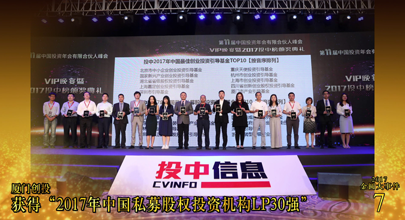 2017年,厦门创投获得“中国最佳创业投资领域有限合伙人TOP10”、“2017年中国私募股权投资机构LP30强”等业界肯定,直接、间接基金管理规模近400亿元;其受托管理的厦门市产业引导基金荣获“全国政府引导基金第四名”、“中国最佳创业投资引导基金TOP10”等荣誉。