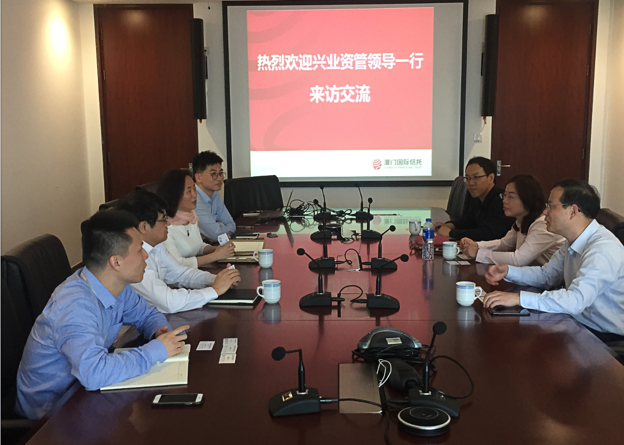 2018年4月11日,兴业资产管理股份有限公司副总裁倪勤携团队负责人一行到访厦门国际信托有限公司开展业务交流。厦门信托李自成总经理、郭韶红副总经理、信托一部副总经理刘雄舟、信托八部副总经理留念等参与了本次交流活动。