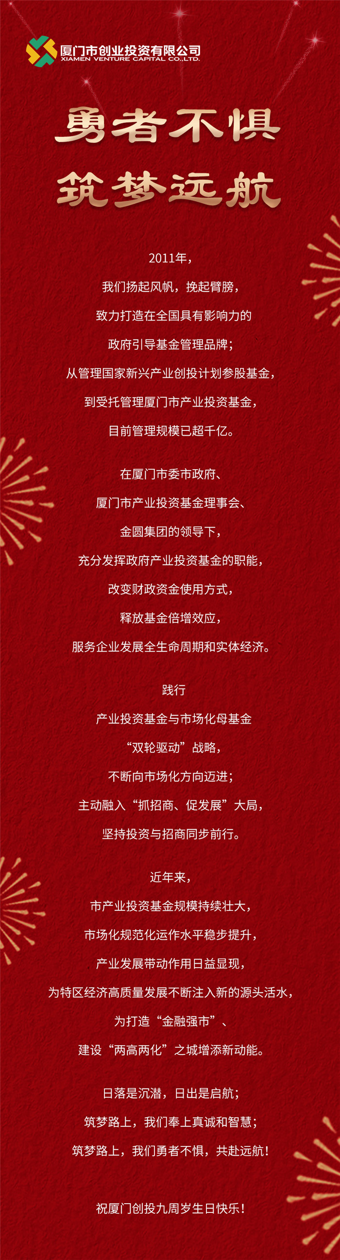 【厦门创投九周年 开篇】:勇者不惧 筑梦远航!