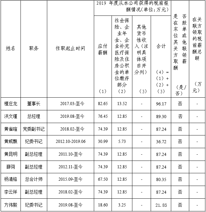 1.上表披露薪酬为我集团企业负责人2019年度应发税前薪酬。其中,第(1)项由市财政局(薪酬审核部门)核定,包括基本年薪和绩效年薪。