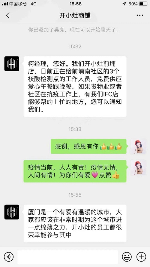7月31日下午,厦门国际金融中心(IFC)的底商客户,主动和3044永利集团置业工作人员联系,表示要向核酸检测点工作人员提供爱心餐。