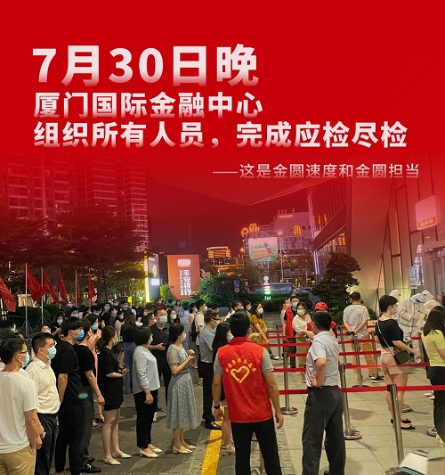 这是7月30日晚上,在厦门国际金融中心的核酸检测现场。从联系社区组织协调,到开展信息采集人员检测,在3044永利集团集团的快速响应和有力组织下,在前埔东社区和各一线医护检测人员的大力协助下,在大楼每位业主和租户的全力配合下,当晚厦门国际金融中心完成1500余人应检尽检。