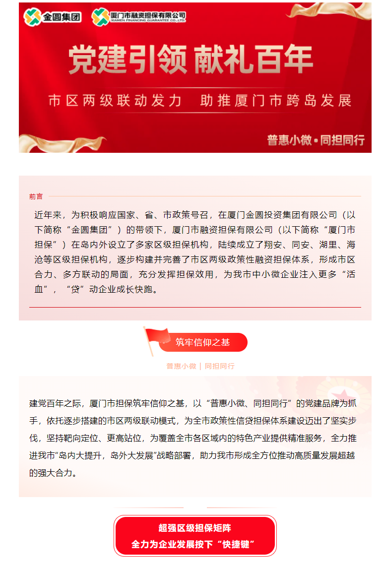 党建引领•献礼百年 | 厦门市担保:市区两级联动发力 助推本市跨岛发展