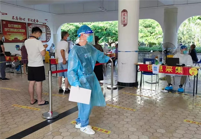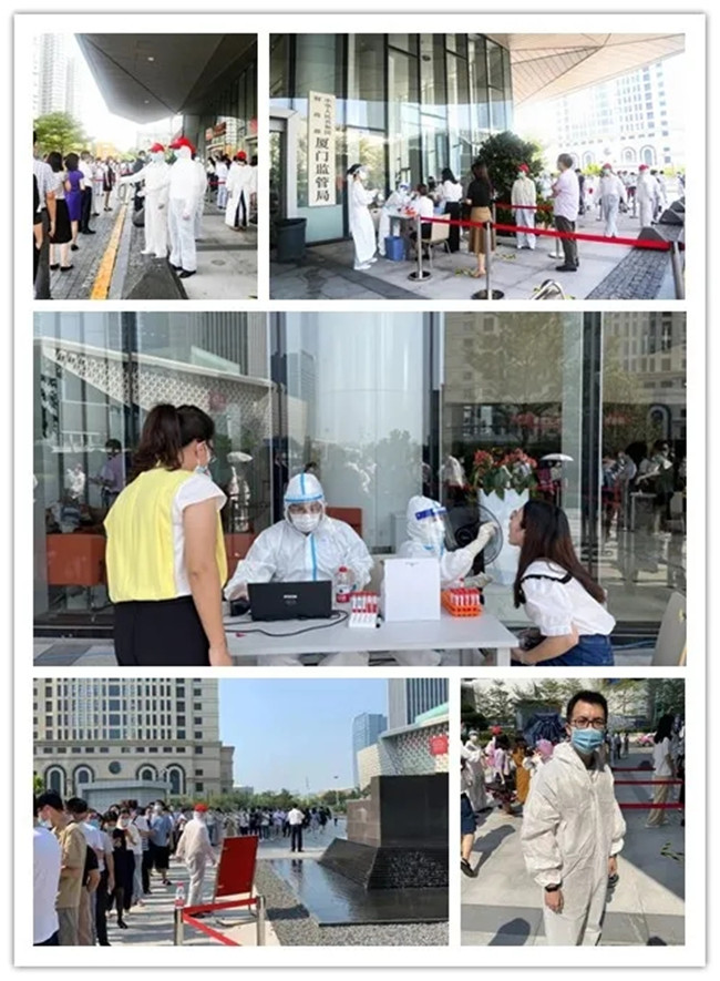 厦门创投志愿者们参加厦港街道支援核酸检测工作,过程中,志愿者们化身引导员、信息员、宣传员、服务员,与社区的工作人员、医护人员并肩战斗。