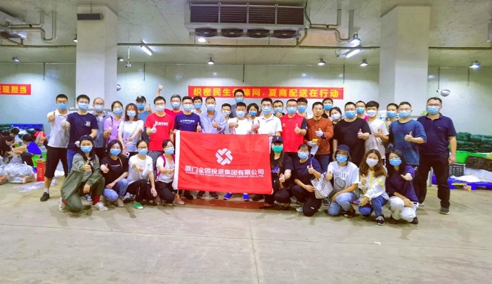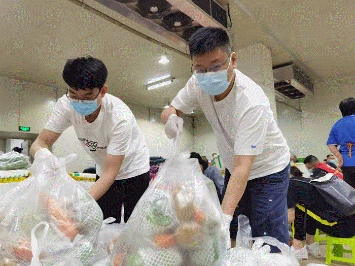 疫情期间,在夏商物资配送中心,每天都有15000份分装打包好的蔬菜,从这里运往同安封控区送到居家隔离的居民手中。在这份政府送给同安人民的爱心礼包里也凝结着志愿者们辛勤的劳动付出。
