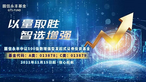 2021年以来,随着市场风格的切换,云集中盘蓝筹的中证500指数表现抢眼。业内普遍认为,中证500指数的估值水平处于历史合适位置,已具备中长期投资价值。在此背景下,圆信永丰基金将于11月15日顺势推出旗下首只指数增强基金——圆信永丰中证500指数增强(A类:013878;C类:013879),着力掘金中证500中坚力量。