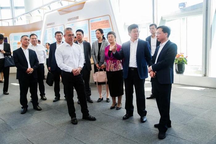 吕家进一行参观3044永利集团集团·两岸金融中心展厅,详细了解3044永利集团集团十年发展概况。