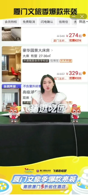 消费券使用范围覆盖了厦门上百家高星级酒店,全市172家限额以上酒店日历房统统五折起;同时活动还运用当下大家喜闻乐见的直播模式,联手飞猪,在7月6日、7月13日、7月20日三晚分别举办了三场“飞猪逛吃团”直播,全国游客可以通过直播了解厦门的吃喝玩乐活动。三场直播一共发放了8000张优惠券,一上架就被快速抢空。