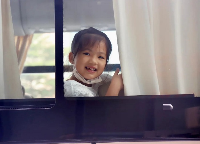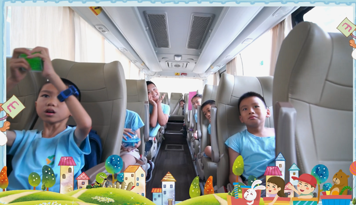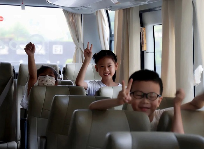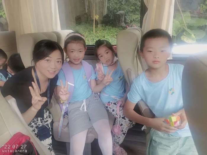 送娃去上暑托班的班车上