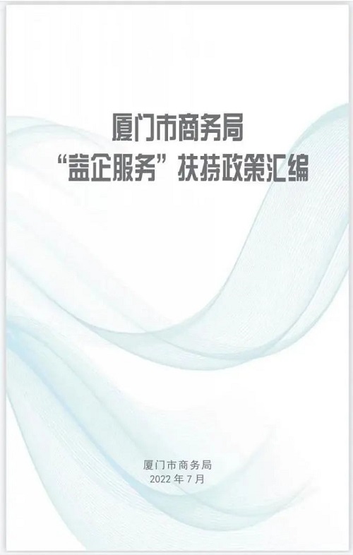 近日,厦门启动“益企服务”专项行动,部署开展“千名干部挂千企,服务企业促发展”活动。为了更好地服务企业,做好政策宣传解读的“辅导员”,厦门市商务局印发《“益企服务”扶持政策汇编》,聚焦商贸行业领域企业的关心关切,从细从实从简梳理相关惠企政策措施,涵盖厦门在进出口贸易、商贸流通业、生活服务业、外商投资等方面的主要惠企政策,全力以赴为商贸行业领域的企业提供精准的政策服务。