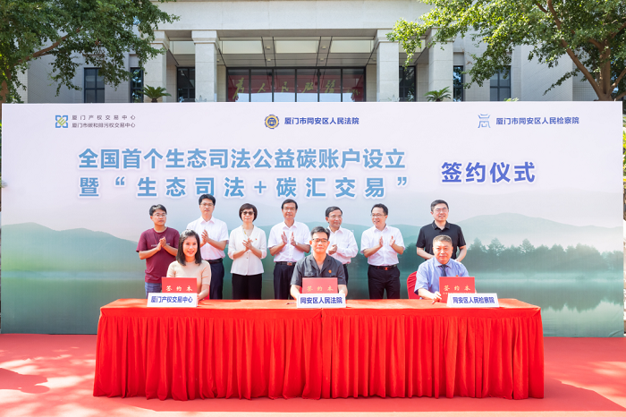 厦门市同安区人民法院、厦门市同安区人民检察院根据涉生态案件实际情况,引导生态环境损害赔偿义务人自愿向厦门产权交易中心认购“绿碳”、“蓝碳”等生态价值产品,以承担替代性生态环境修复责任,并将购买到的碳汇交付到“厦门市生态司法公益碳账户”,助力在厦门社会范围内实现“碳中和”目标。