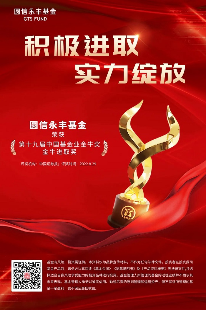 近日,由中国证券报主办,被誉为中国基金业“奥斯卡”的中国基金业金牛奖颁奖典礼在上海隆重举办。圆信永丰基金凭借着出色的长期业绩及稳步提升的综合实力荣获第19届金牛奖·金牛进取奖。
