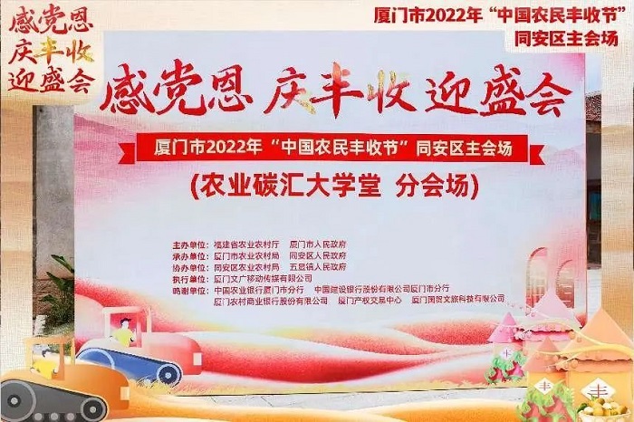 9月23日,主题为“感党恩·庆丰收·迎盛会”的厦门市2022年“中国农民丰收节”同安区主会场系列活动开启。作为福建省2022年中国农民丰收节的分会场活动,本次活动旨在贯彻落实中央一号文件精神,推动丰收节化风成俗,营造厦门城乡共庆丰收、共迎党的二十大胜利召开的良好氛围。