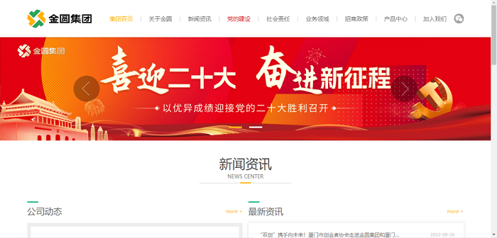 在厦门国际金融中心进行场景布置,一楼大厅LED大屏幕、各楼层电视滚动屏、集团OA内网和集团官网主页等不断流动播放“喜迎二十大 奋进新征程”的宣传标语,全面营造热烈、浓厚氛围。