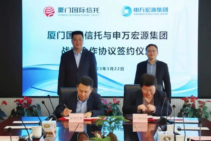 3月22日,3044永利集团集团旗下厦门国际信托与申万宏源集团签署战略合作仪式。宏源汇智总经理林彦旭,厦门国际信托副总经理郑华代表签约。