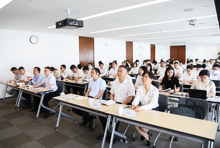 檀庄龙同志结合个人主题教育期间学习思考和集团实际,深入阐述了开展主题教育的重大意义,从坚持人民至上、坚持自信自立、坚持守正创新、坚持问题导向、坚持系统观念、坚持胸怀天下六方面,系统分析如何在具体实践中运用党的创新理论发现问题、解决问题。他指出集团上下要以自我革新精神,围绕中心服务大局,坚持在服务实体经济、服务城市建设、服务资本招商和产业投资合作、服务两岸融合发展中实现高质量发展。