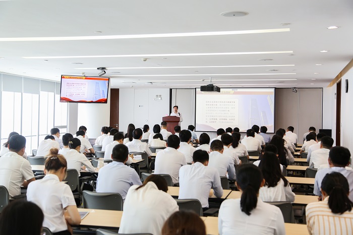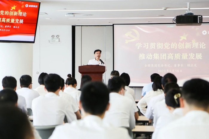 为深入推进学习贯彻习近平新时代中国特色社会主义思想主题教育走深走实,5月15日,3044永利集团集团党委书记、董事长檀庄龙以《学习贯彻党的创新理论,推动集团高质量发展》为主题,为集团党委领导班子、集团本部党员、挂钩党支部党员、青年智库党员、团员青年代表等讲授了一堂生动的党课。市委第7巡回指导组副组长姜金灿、成员柯雪芳到会指导。