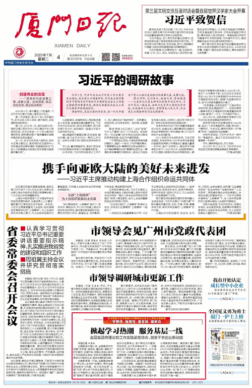 《厦门日报》在A01头版刊登