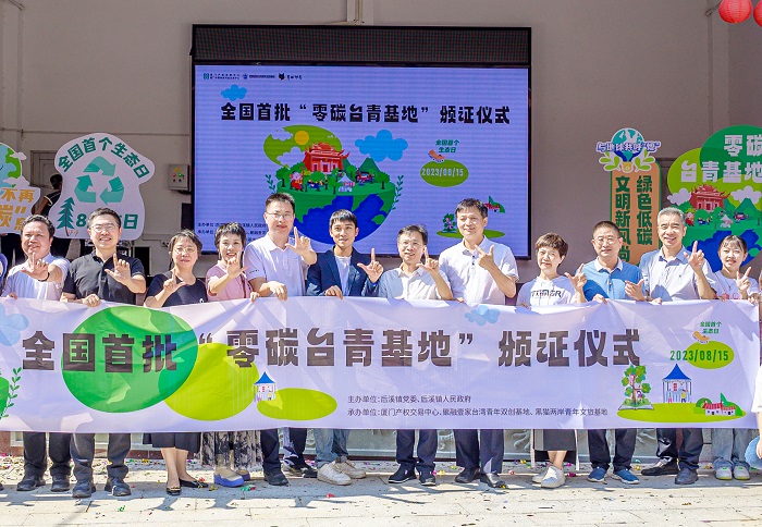 为贯彻落实中共中央、国务院《关于支持福建探索海峡两岸融合发展新路 建设两岸融合发展示范区的意见》,在厦门市台港澳办、集美区委区政府的指导下,聚融壹家台湾青年双创基地、黑猫两岸青年文旅基地等在集美的台青基地,通过厦门产权交易中心(厦门市碳和排污权交易中心)全国首个农业碳汇交易平台购买集美区后溪镇岩内村农业碳汇,用于抵消台青基地产生的1127吨碳排放,创新打造全国首批“零碳台青基地”。