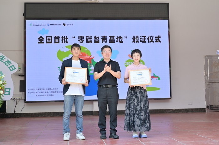 厦门产权交易中心董事长连炜为台青基地颁发碳中和证书。