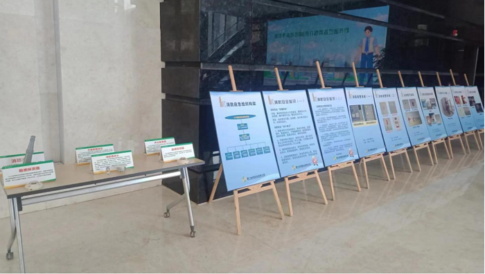 厦门国际金融中心一楼大堂设置展位,普及消防安全知识,营造浓厚宣传氛围。
