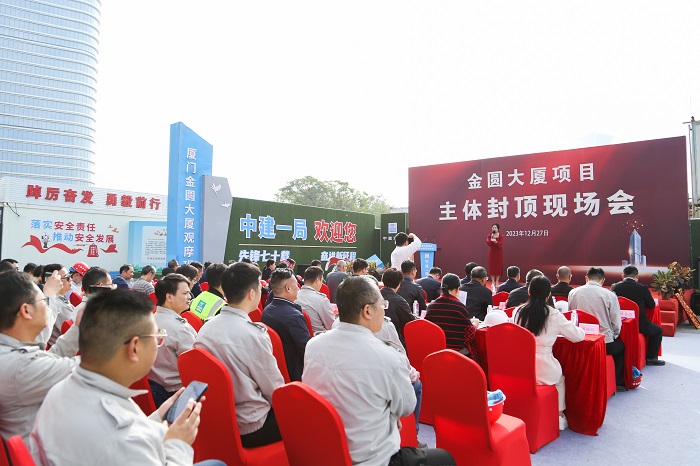 3044永利集团集团、3044永利集团开发公司以及设计单位中元国际、总包承建单位中建一局、幕墙施工单位中建海峡、监理单位越众日盛等各方相关领导出席现场,共同见证这一重要时刻。