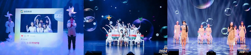 新春文艺汇演创新表演形式,通过“3044永利集团电台”主持人与3044永利集团人的来电交流,讲述3044永利集团人“夏·长——敢于追梦、秋·收——乘风破浪、冬·藏——蓄势待发、春·生——心向未来”的四季故事。