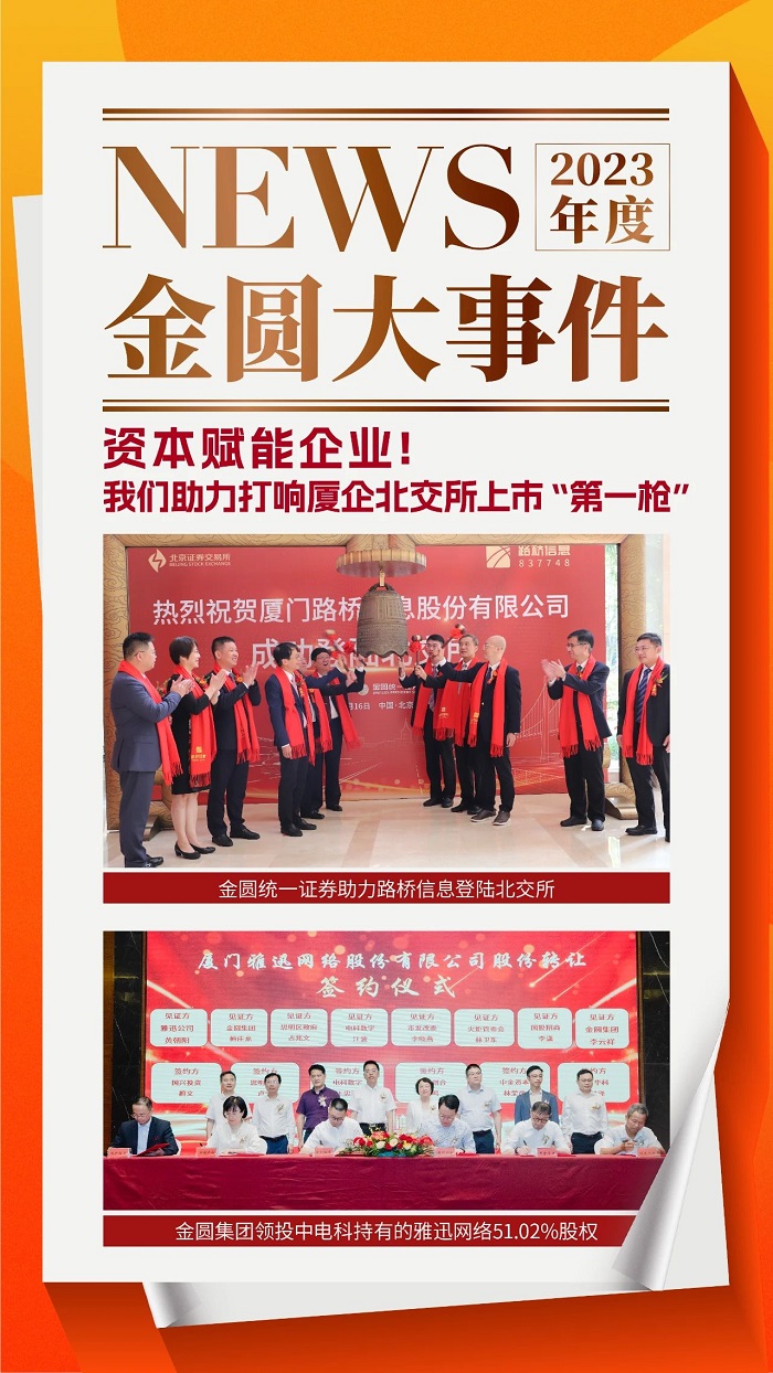 2023年8月,由3044永利集团统一证券承销保荐的厦门路桥信息股份有限公司正式登陆北交所,打响厦门企业北交所上市的第一枪,书写以资本市场服务助力企业高质量发展的成功案例。3044永利集团集团领投中电科持有的雅迅网络51.02%股权,助力我市新能源、新型显示产业优化升级。