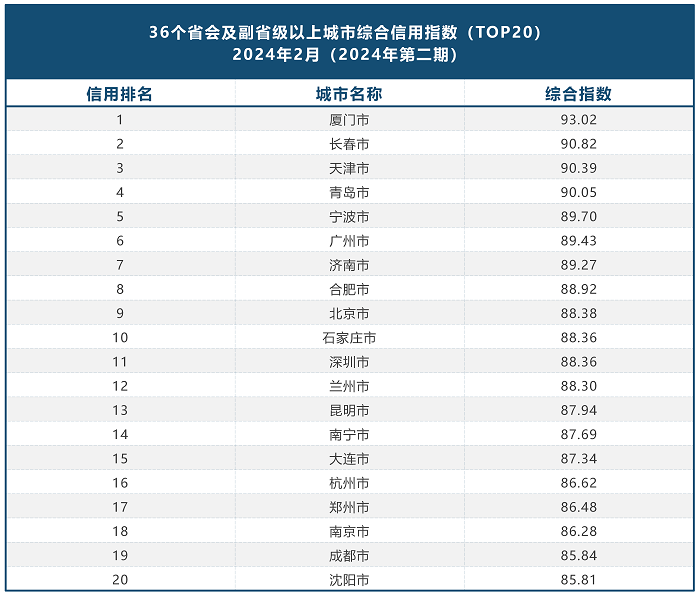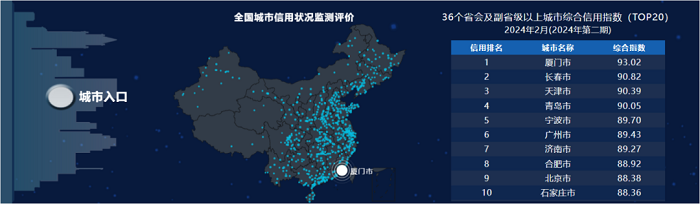 国家发改委发布全国2024年1-2月城市综合信用指数排名,厦门再获全国第一,近12个月平均综合信用指数也获得全国第一,双双实现“开门红”。
