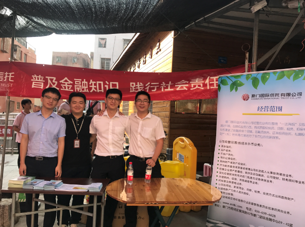 为响应厦门银监局“2017年金融知识进万家”的宣传要求,加强公众金融知识宣传教育,2017年10月28日下午,厦门国际信托财富管理中心一行6人前往莲前街道何厝社区开展金融知识宣传活动,配合何厝社区重阳节敬老活动,切实履行信托公司的社会责任。