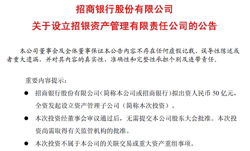 3、招行在披露2017年报的同时,也公告了拟设立招银资产管理有限责任公司。这一举措符合监管倡导的转型方向,若获批,将进一步完善资管业务的交易主体地位和体制架构,有利于更快实现平稳过渡。