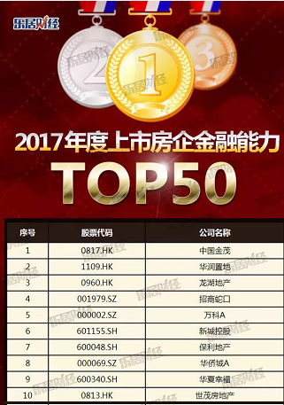 《2017上市房企金融能力TOP50》榜单显示,来自沪深交易所的房地产上市公司(含同时在香港上市的公司)共19家,来自港交所的房地产上市公司共31家,其中中国金茂、华润置地、龙湖地产位居三强。这也意味着,龙湖系上市民营房企金融能力第一。
