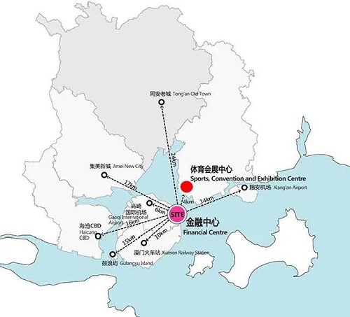 Located in the northeast of Xiamen Island, the Wutong High-end Business District of Cross-Strait Financial Centre is close to the East Sea to the east, and the Wutong Port to the north. It is about 10 kilometres away from Xiamen Railway Station, and 14 kilometres away from the future Xiang'an Airport as the eastern gateway area of Xiamen Island.