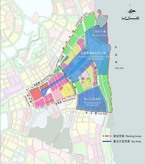 Planning scope: east to the coastline of East Sea, south to Jinqi Road, west to Jinshan Road, north to Xianyue Road and Suiding North Road; the total area of the planning scope is about 4 square kilometres.