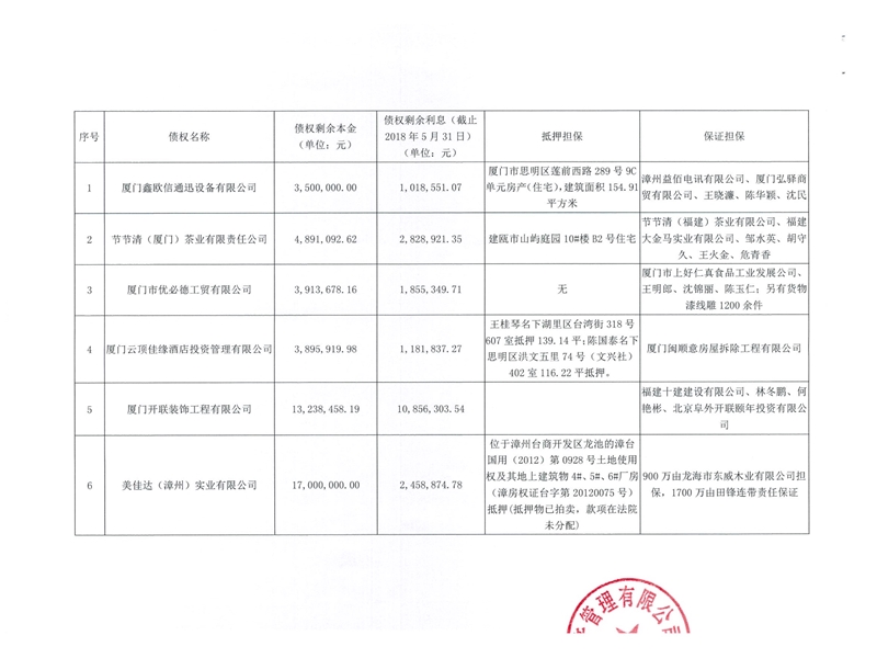 我司拟对名下不良债权资产7户分别组包进行公开处置,处置方式:债权转让。截止2018年0...