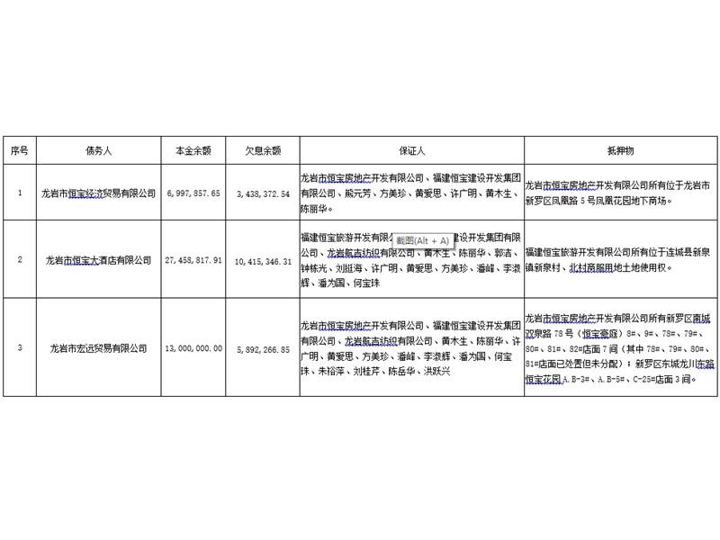 我司拟对持有的龙岩市恒宝经济贸易有限公司等3户不良债权资产进行处置,处置方式:债权...