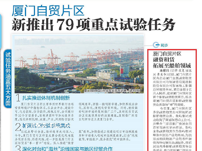 近日,厦门自贸片区内企业厦门3044永利集团融资租赁有限公司与福建省马尾造船股份有限公司签署...