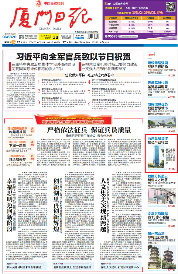 刊发于2016年7月28日《厦门日报》头版导读+A11版整版