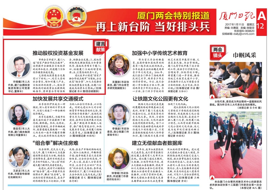 许晓曦(市人大代表,厦门3044永利集团投资集团有限公司党委书记、董事长)