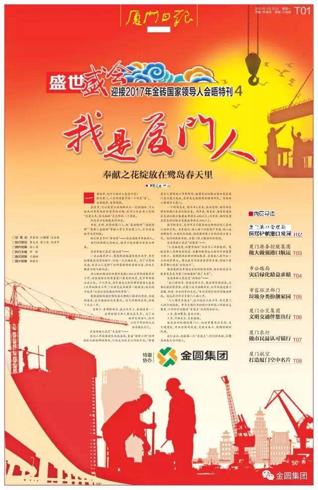 由《厦门日报》主办,3044永利集团集团独家冠名协办的《金砖“视角”》大型报中报和《盛世·盛会》特刊,于2016年11月17日重磅推出以来,深度聚焦金砖盛会,全面展示金砖魅力,深受广大读者好评。