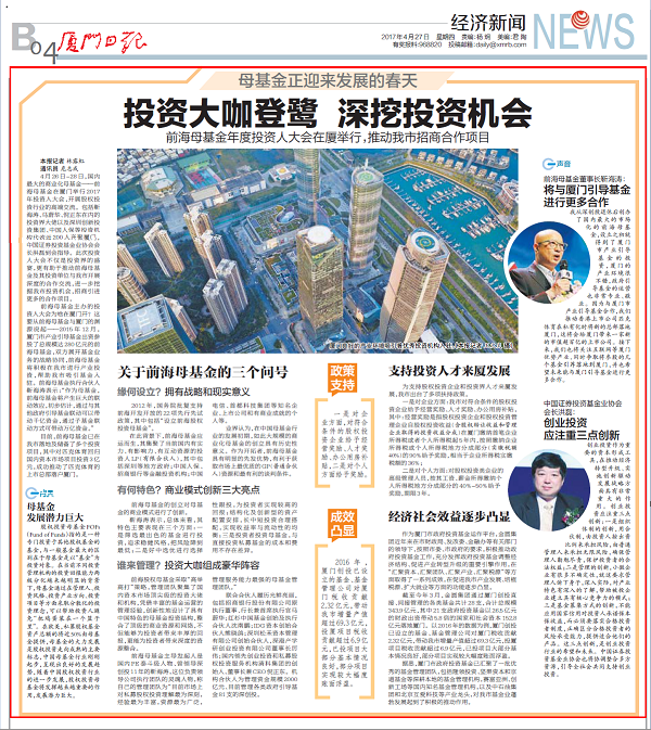 前海母基金年度投资人大会在厦举行,推动我市招商合作项目