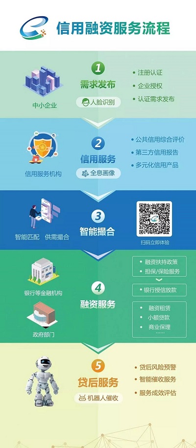 以大数据、智能风控等金融科技为支撑,全国信易贷平台紧紧围绕“信用”这个核心要素,打造了覆盖全国、全金融场景和企业生命周期的综合性公共服务平台。借助全国信易贷平台,政府部门、银行、信用服务机构和各类金融机构可迅速为中小企业服务提供精准融资服务,有力缓解中小企业融资难题。