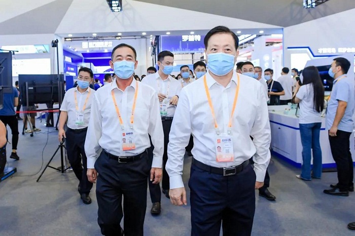 厦门市委常委、组织部部长陈沈阳,厦门市委常委、宣传部部长李辉跃在人才项目资本合作展现场参观指导。